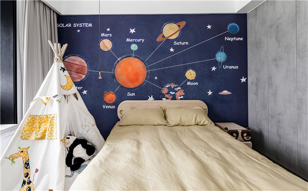 考虑到孩子的天性,所以儿童房中就加入了一些亮色进行装饰~