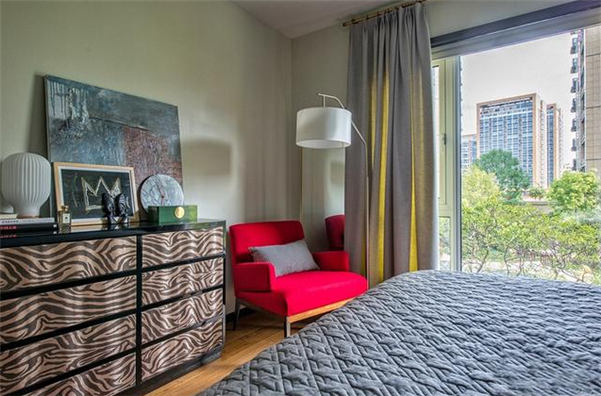 ▲但你以为这就完了,在床完,摆放了鲜艳的红色单椅,一下子将空间温暖了起来。再加上时尚的九斗柜,这个区域竟然又摩登起来。