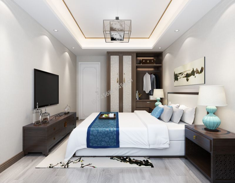潮白河孔雀城500平新中式风格别墅装修案例风效果图