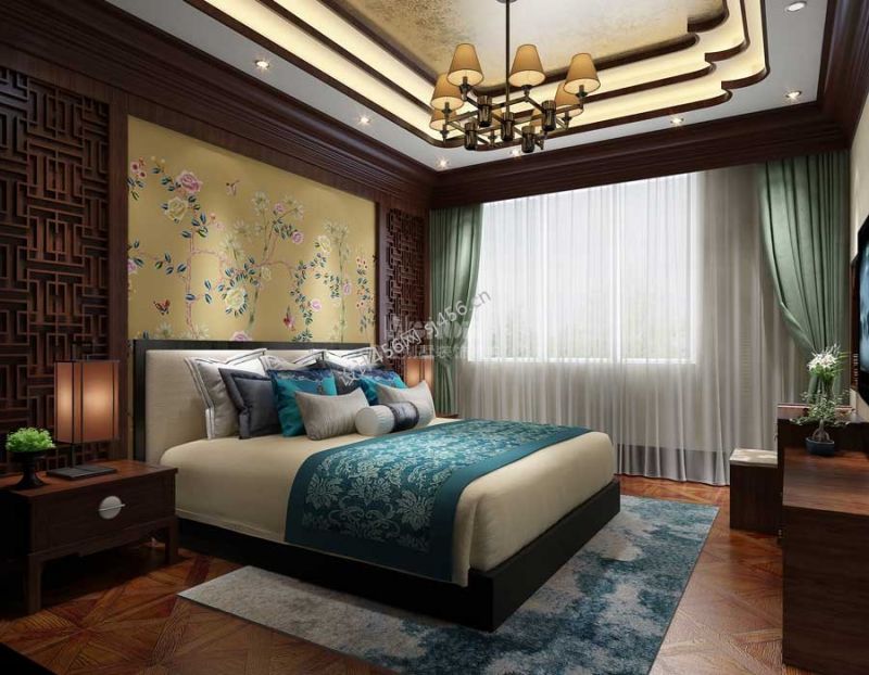 潮白河孔雀城500平新中式风格别墅装修案例风效果图