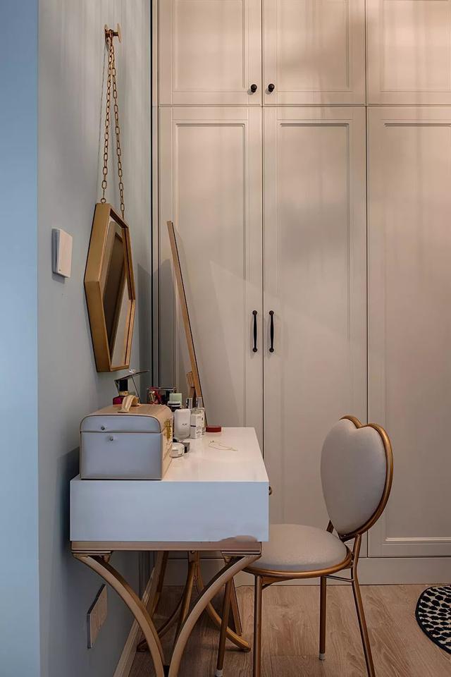 把主卧的卫生间改造成一间衣帽间,这样改造能够让室内显得更加敞亮,而且也更加实用,衣帽间的柜子采用入墙式的安装方式,与浅灰色的墙壁非常好的搭配在了一起,显得格外清新有质感,丰富的储物空间能够将物品分门别类的收纳起来,从而让卧室显得更加整齐大方,日常拿取使用也更加便利。