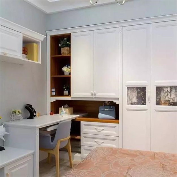书桌+衣柜:我们的卧室中一般会有一张小书桌或梳妆台,把书桌与衣柜巧妙结合,可以节省不少空间哦~