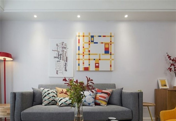 ▲从沙发背景墙正视图可以看出,色彩搭配的非常好,看似随意的搭配,其实色彩都在相互呼应,热闹却不凌乱,鲜艳却不争抢。