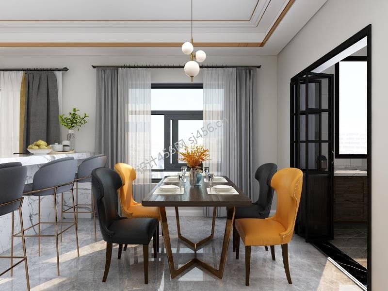 轻奢风格110平三居室餐厅餐桌装修设计图片