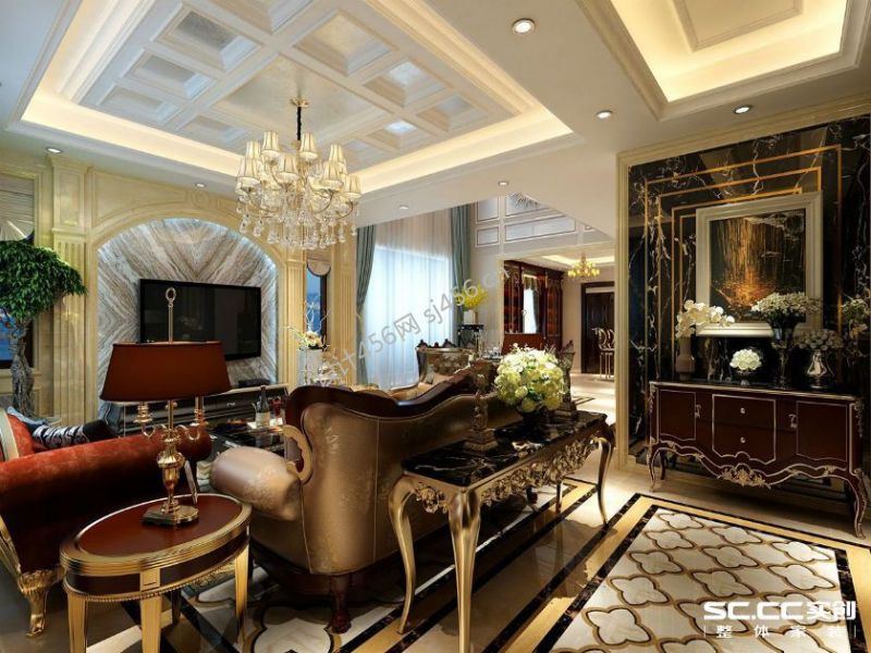 孔雀城英国宫350平新古典风格装修案例风效果图