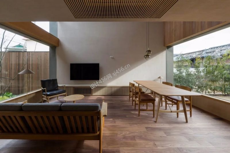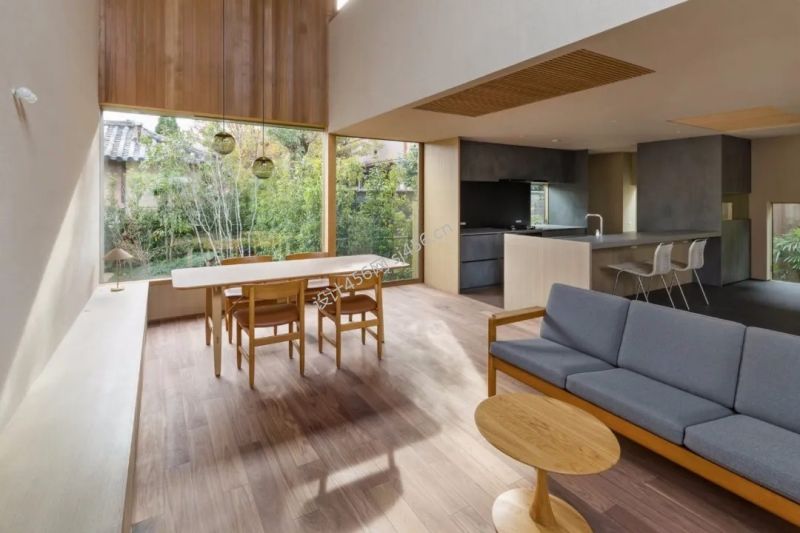 360平米简约原木风格别墅客厅餐厅装修图片