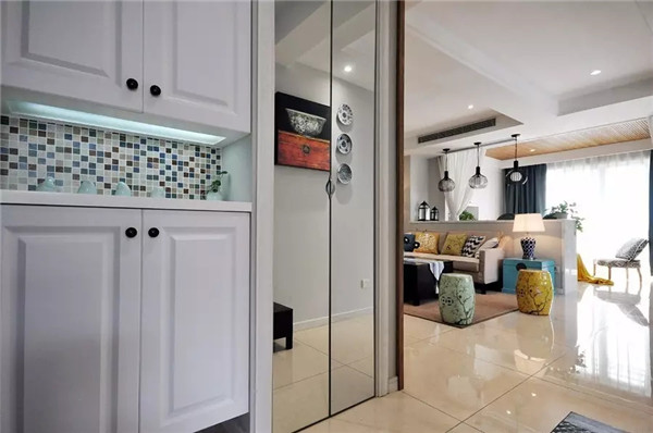 玄关设计了鞋柜和镜柜,实用又有趣。