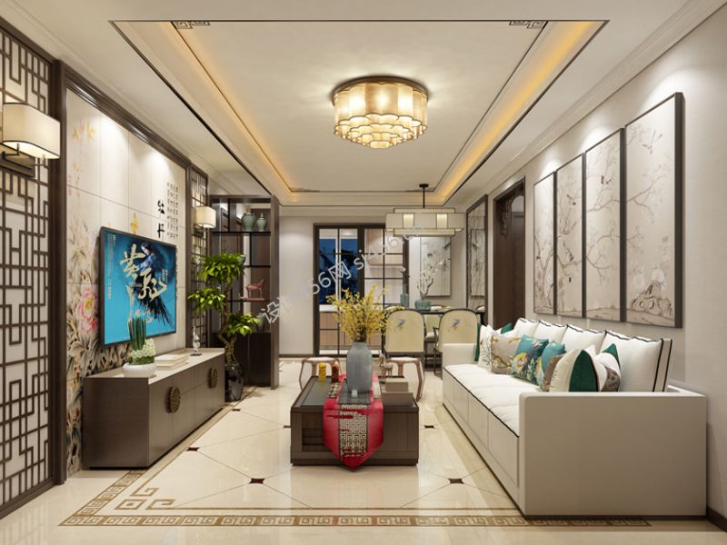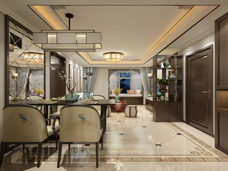 京贸国际公馆新中式风格120平米三居室装修案例风效果图