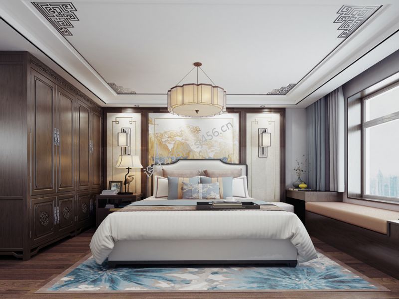 榆树馆西里新中式风格145平米三居室装修案例风效果图