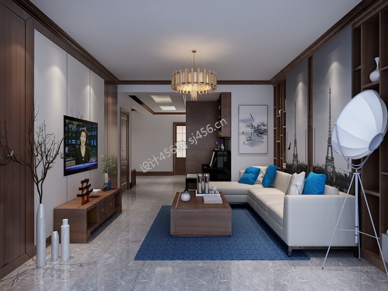 京贸国际公馆新中式风格120平米三居室装修案例风效果图