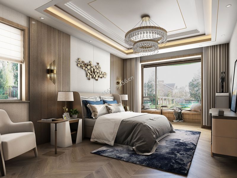 现代风格320平米别墅卧室背景墙装修设计效果图