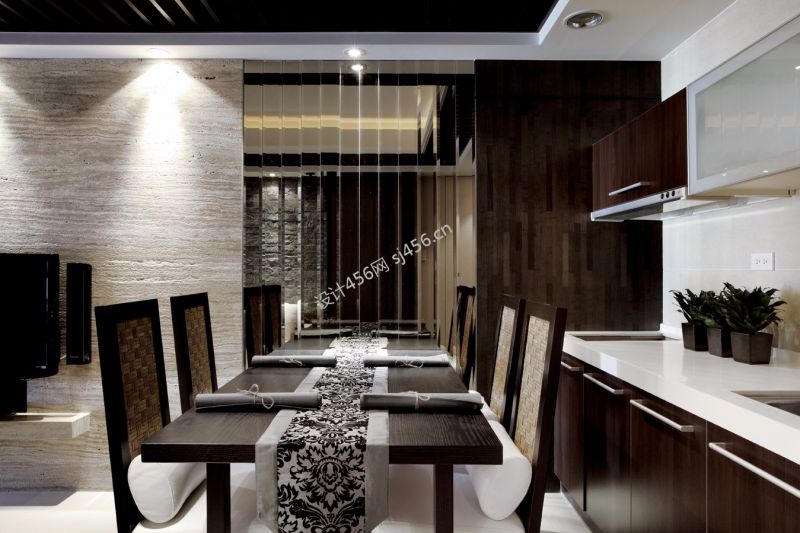 现代餐厅镜面背景墙装修效果图片
