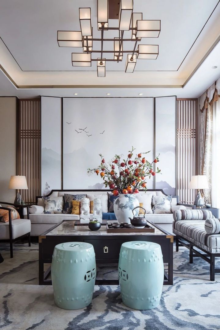金科王府澜庭新中式风格480平米别墅装修案例风效果图