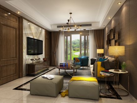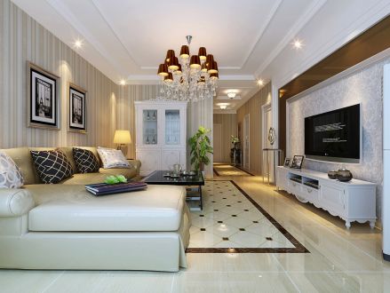 兴政西里欧美风格120平米三居室装修案例风效果图