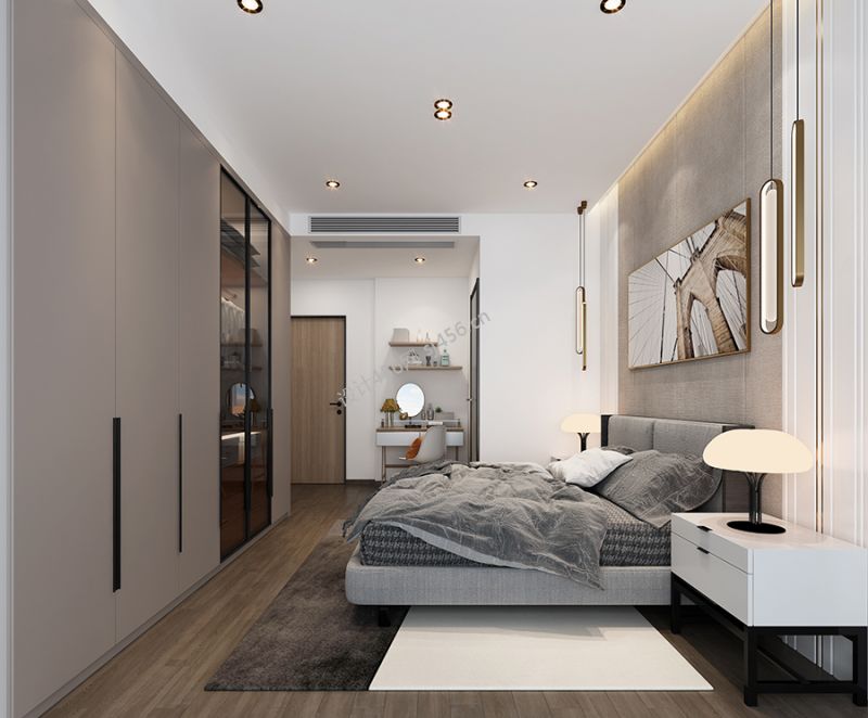 现代风格112平米三居室卧室背景墙装修设计效果图
