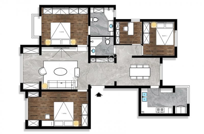 西北旺家属楼-147㎡-三居室-木饰花语风效果图