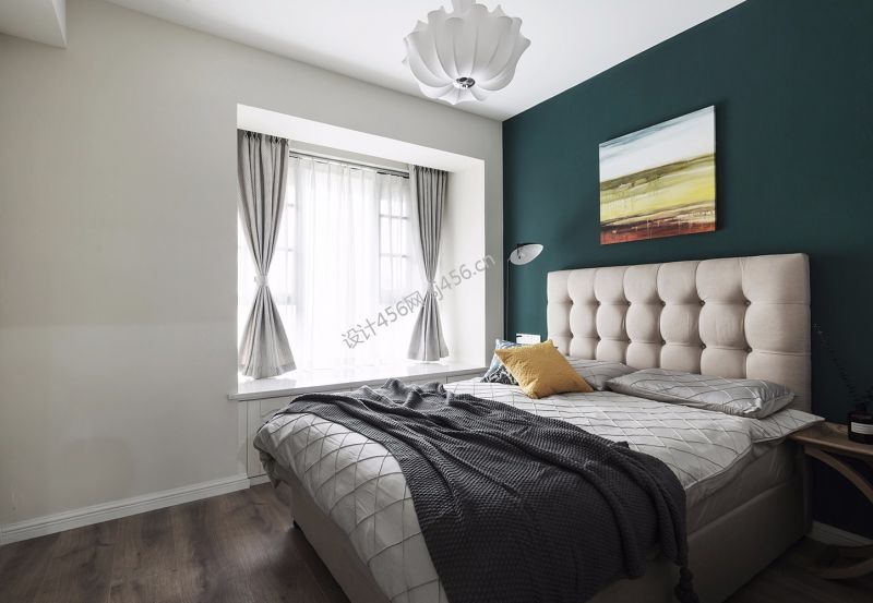 北欧风格三居室112平米卧室背景墙颜色装修设计图