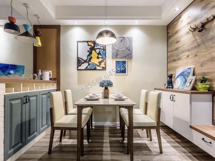 北欧风格116平米三居餐厅餐桌装修设计图片