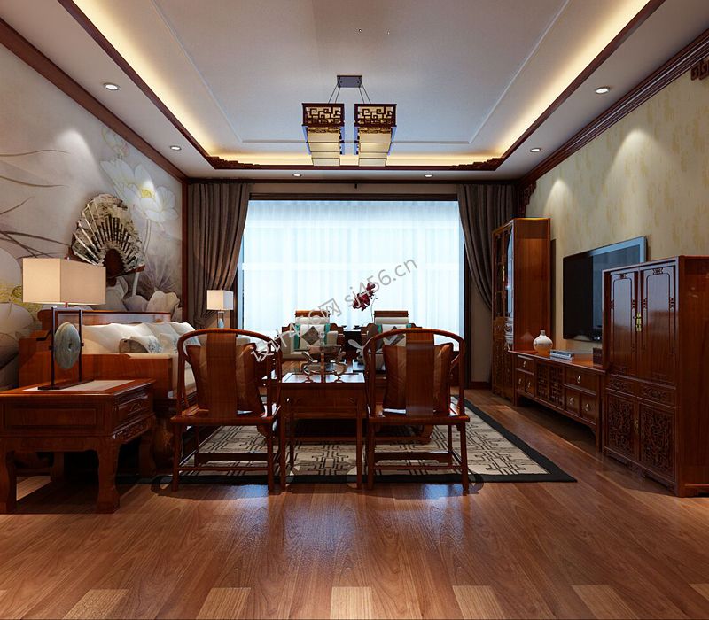 金桥国际公寓85㎡二居室中式风格装修案例风效果图