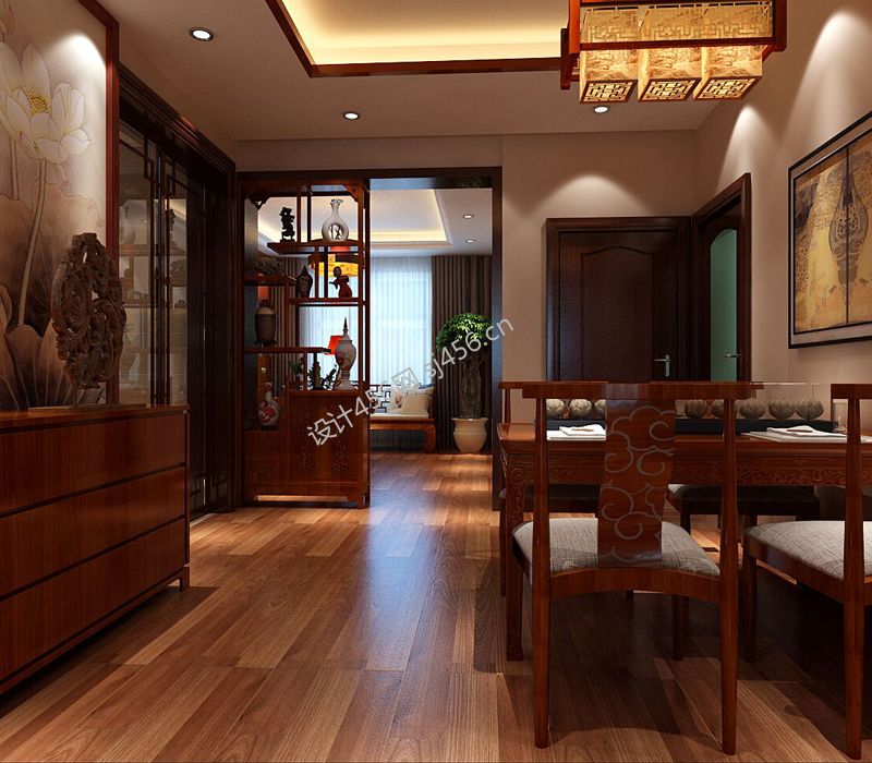 圆明园西路2号院88㎡三居室中式风格装修案例风效果图