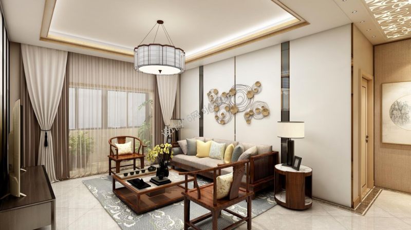 金桥国际公寓85㎡二居室中式风格装修案例风效果图
