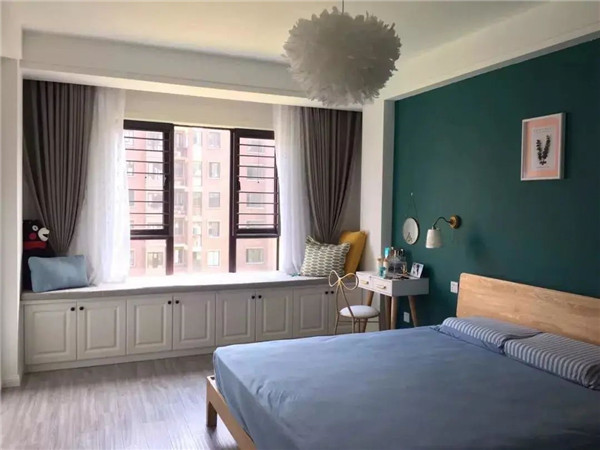 如果飘窗是内飘窗,且是非承重墙,那么我们可以将底部打掉,设计收纳柜+台面,作为休闲区,实用性更强。