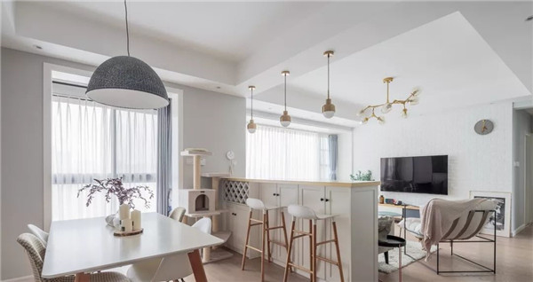 吧台的位置可以在客厅和餐厅之间,或者餐厅和厨房之间,还能作为隔断划分功能区。除了这两个地方,阳台或者窗边也能做吧台,而且视野和光线都非常棒。