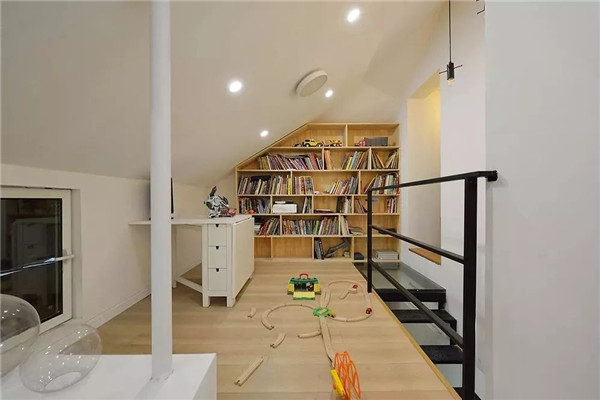 对于大一点的阁楼,我们可以打造读书休闲区,建议铺木地板,直接坐在地上也很舒适。
