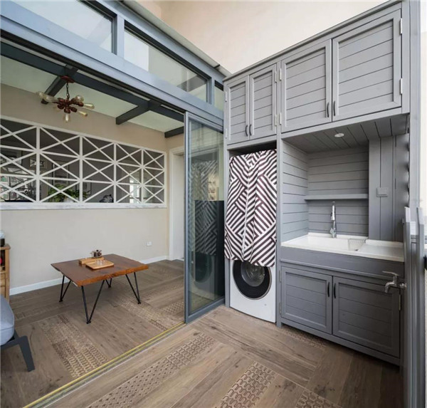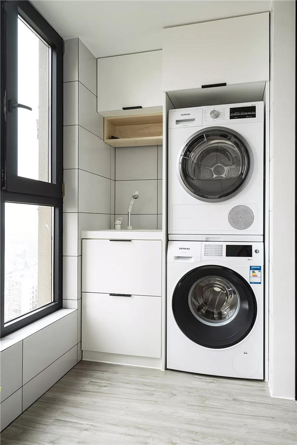 阳台的洗衣机柜+洗衣池的基础下,还有很多常用的洗衣液、洗衣粉、肥皂、刷子等小物品,这些物品都要有摆放的位置,并且常用的话还需要摆在随手可得的地方,因此在洗衣机柜上下方装开放的收纳架,就是非常合适的选择了。本期申远空间设计为大家带来了不少阳台设计方案,赶快了解下~~~