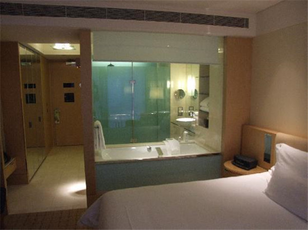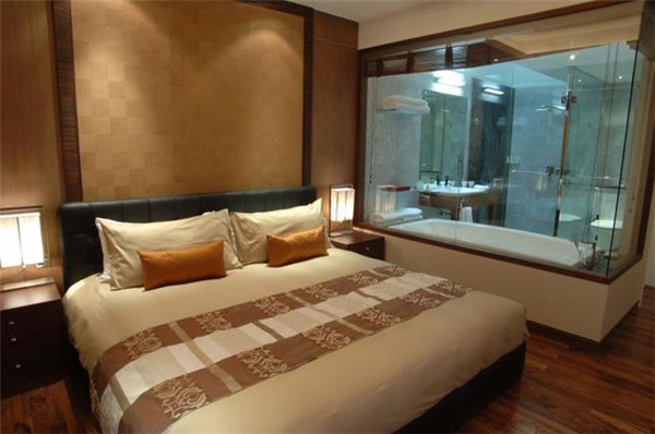 其实酒店卫生间全用透明玻璃设计完全是出于实用性和安全性,并不是我们所想象的那样。首先,用透明玻璃来隔开卫生间,完全能够让整个房间显的更大,从而不会给住户压抑感。