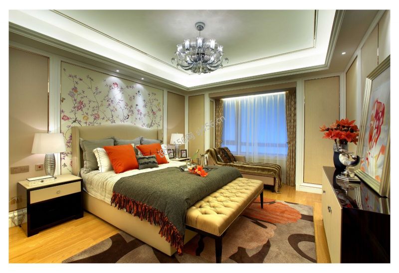 轻奢风格149平米三室两厅卧室床头家装效果图