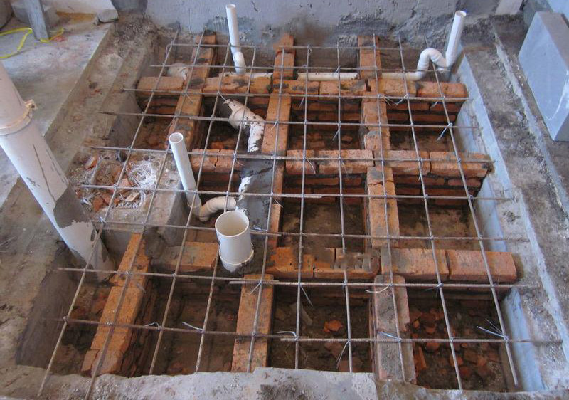 2、用红砖或混凝土做隔断架空,把沉箱分成若干个400*400左右的格子。这一步很多人都不去做,其实是相当重要的一个步骤,只有做了一个这样的承重隔断,上面的混凝土层才不会往下坠。能够有效避免下沉式卫生间在使用过程中出现下沉、开裂以及漏水。