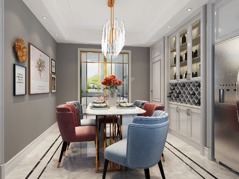 北京玫瑰园轻奢风格132平米三居室装修案例风效果图
