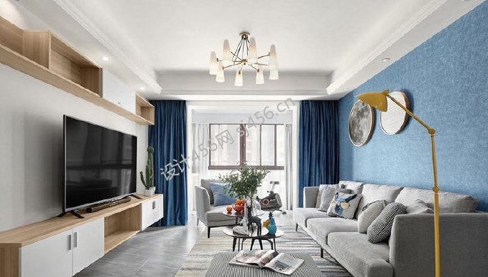 北欧风格115平米三室客厅墙面颜色装修设计图