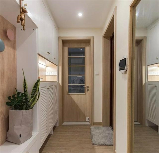 鞋柜的光源也需要有的,鞋柜最底下、里面的隔断可以安装感应的辅助灯源;这样回家的时候就可以感应开灯,离开的时候也可以感应关灯。