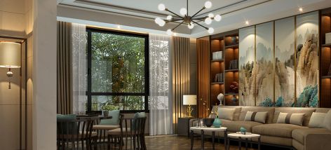 万科七橡墅中式风格180平米别墅装修案例风效果图