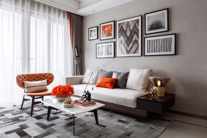 轻奢风格113平米三室两厅客厅装修效果图欣赏