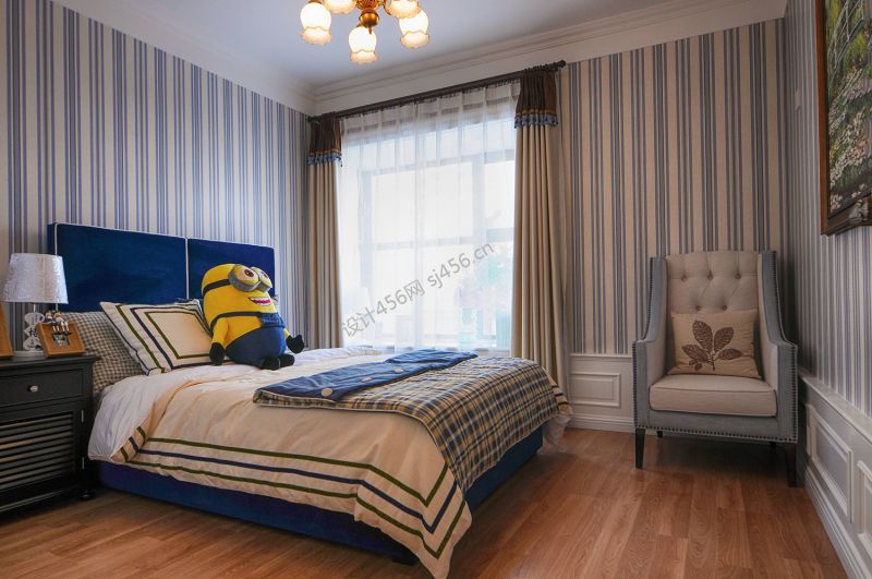 混搭风格140平米三室两厅卧室窗帘装修效果图欣赏