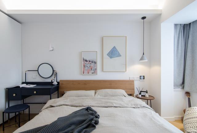 卧室装修的十分简单,墙壁直接刷成了白色的格调,搭配浅色的实木地板装饰,在阳光的映衬下,使得室内显得更加敞亮大气,从而让生活更加轻松。卧室与阳台之间采用开放式的设计,还打造了一扇大尺寸的窗户,从而让卧室显得更加宽敞明亮,躺在大床上透过窗户也能看到外面美丽的景色,让人感觉更加轻松。