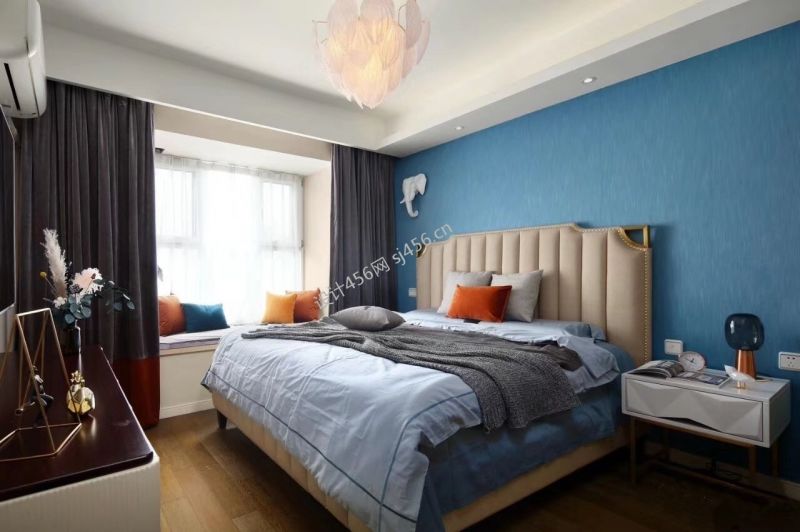 轻奢风三居室105平米卧室墙面颜色装修效果图