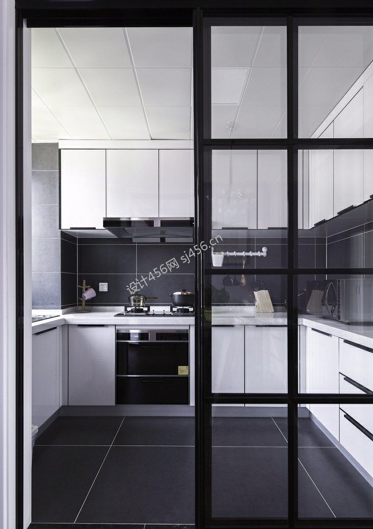 北欧风三居室100平厨房玻璃门装修效果图