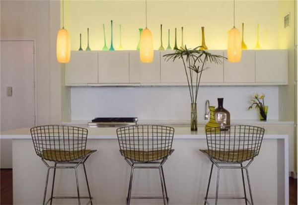 对于吧台装修,吧台的灯光的选择也尤为重要。暖色系的灯光可以营造出安逸温馨的氛围,适合三两闺蜜聊天;也能够促进夫妻二人之间的感情。黄色的灯光不会让人觉得刺眼,视觉效果也很不错。如果你装修吧台的上方是玻璃柜,可以在上方安装灯具,这样灯光通过玻璃的折射,会让人有赏心悦目的感觉。