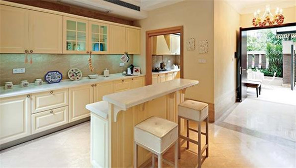 3.吧台长度:吧台应具有多少长度才方便使用,一般来说,最小的水槽需长60cm,操作台面60cm,其他则按自己的需要度量即可。这个长度不强迫,建议以方便通过为宜。