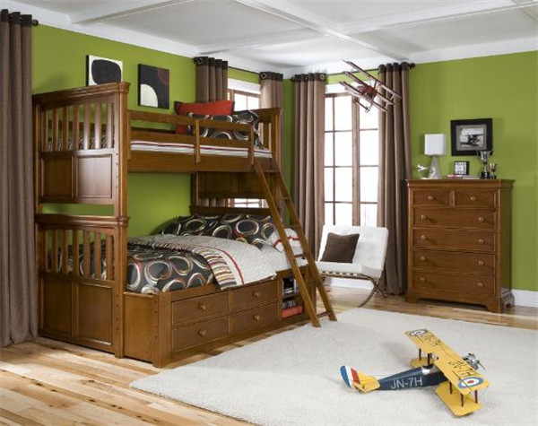 舒适和谐的摆设,实用的家具设计,可以协助孩童手眼协调能力的发展。对于幼儿期的孩子,卧室内的家具软装配饰应采用圆角及柔软的材料,保证儿童的安全;对于青少年期的孩子,学习区域为设计重点。书桌要方便使用,存储学习用具的地方;采光要好,尽量在自然光下读书写字以保护视力。家具尽量挑选松木、柚木等油脂含量较高的木质家具,这类家具不易受潮发霉,尤其纸纤家具本身亦有防潮、可水洗及防虫等特性。