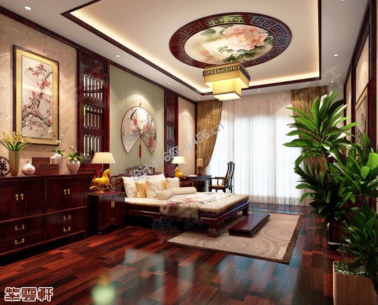 置地城160㎡自建别墅中式风格装修案例风效果图