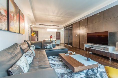 春江明月时尚简约风140平米三室两厅装修案例风效果图