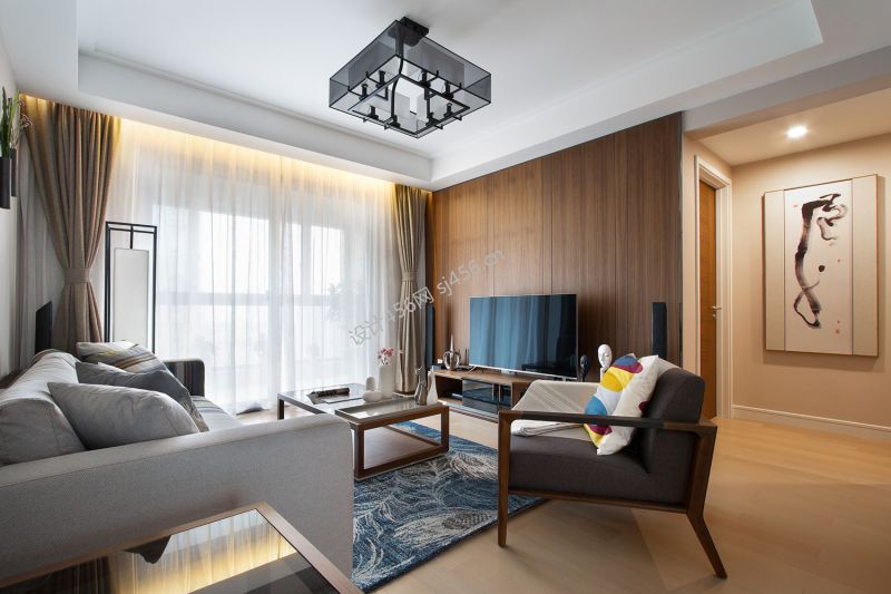 新中式风格146平米三室两厅客厅装修效果图欣赏