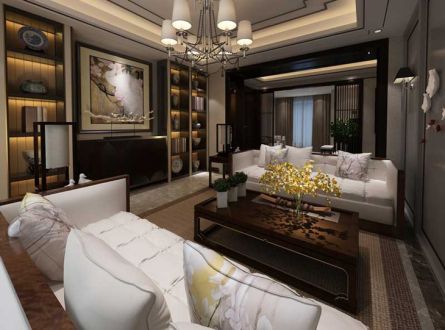 龙腾香格里新中式107平米三室两厅装修案例风效果图