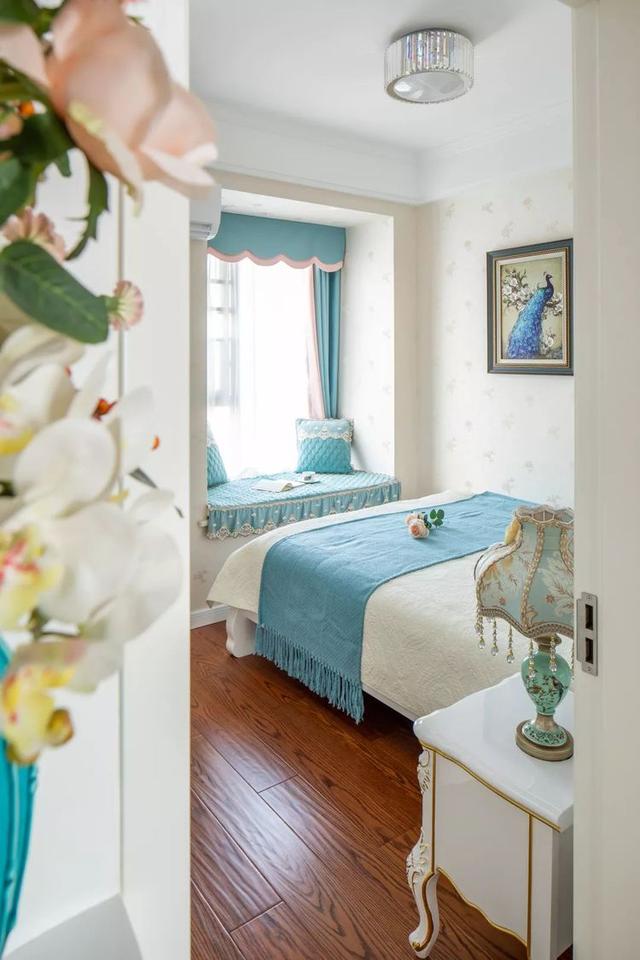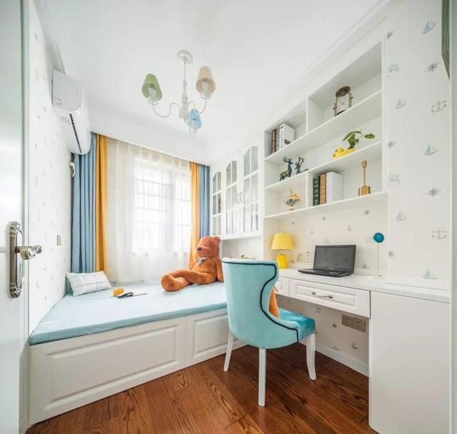 儿童房用了孩子喜欢的蓝色,墙纸也用了柔和的色彩,虽小却温馨!