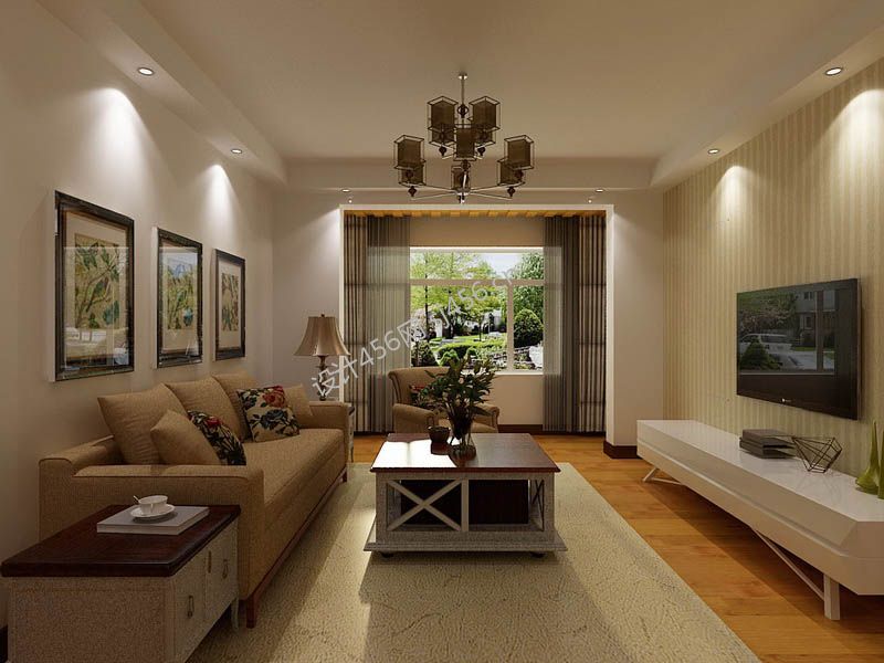恒大御峰三居130平温馨风格客厅沙发背景墙设计效果图
